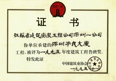 華民大廈竣工后先后獲:深圳市優(yōu)質(zhì)樣板(第一名)、江蘇省優(yōu)質(zhì)工程(金牌)、江蘇省揚(yáng)子杯、江蘇省名牌工程、中國(guó)建筑業(yè)最高魯班獎(jiǎng)。