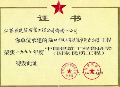 海口市中級人民法院審判辦公樓位于海口市金宇路8號,1995年4月竣工,1996年6月被評為海南省優(yōu)質(zhì)工程,并榮獲海南省優(yōu)秀建筑二等獎,1997年12月榮獲1997年度建筑工程魯班獎。