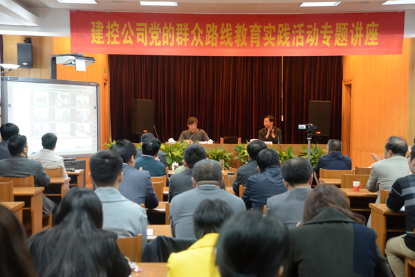 3月28日下午,公司在一樓會議室舉辦了黨的群眾路線教育實踐活動專題講座。講座由市委黨校薛峰教授主講,公司黨委書記陸金龍主持,黨委副書記吳士茂,黨委委員程杰、王宏和建工控股機關、華建公司總部全體人員,各直屬單位領導班子黨員負責人、黨務部門負責人共58人到會聽講。華建深圳、海南、北京、珠海、上海、惠州、鹽城等駐外分支機構以視頻形式同步收聽收看。