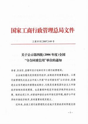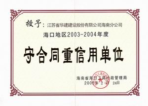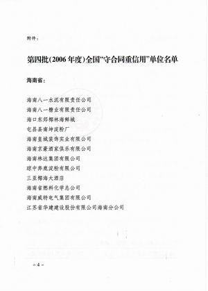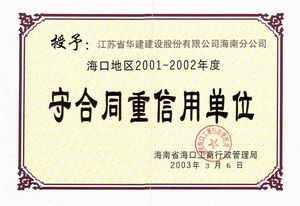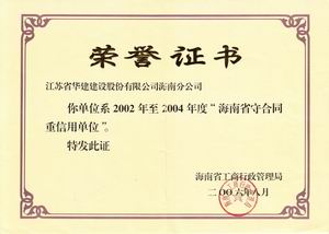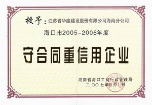 企業誠信榮譽 時間:2019-01-01 9049 2001-2002年度海口市守合同重信用 2003-2004年度海口市守合同重信用 2005-2006年度海口市守合同重信用 2002-2004年度海南省守合同重信用 2006年度全國守合同重信用1 2006年度全國守合同重信用2 2006年度全國守合同重信用3 2006年度全國守合同重信用4 2012年度海南省守合同重信用