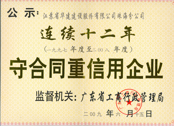 2009廣東省連續十二年守合同重信用企業
