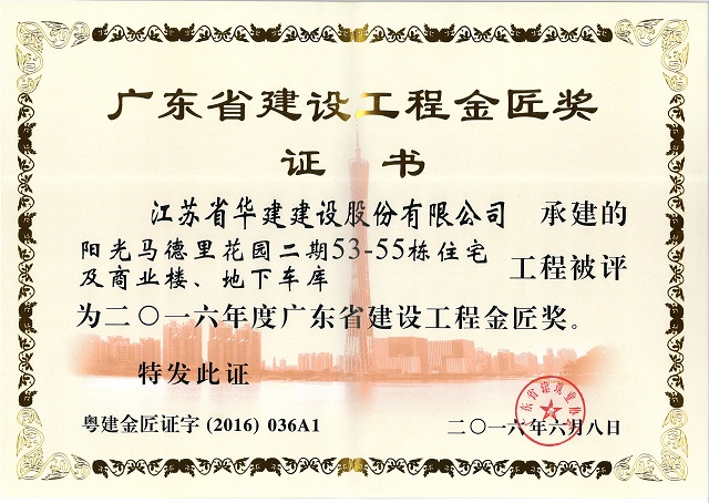 2016年度陽光馬德里53-55棟建設工程廣東省優(yōu)質(zhì)獎